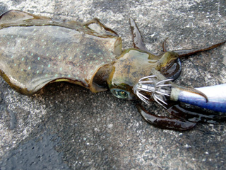 これに続けと一心不乱にロッドをシャクリますが無反応・・・お昼を回り諦めかけた時にアタリがあり釣り上げたのは残念ながらアオリイカではなくモンコイカでしたが過去最高のサイズに満足しました。