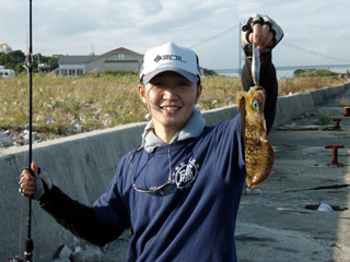 久しぶりの親子でのエギング釣行!親父さんは明るい間に晩ご飯のおかずにとアジをサビキで狙うが不発・・・2時間してまさかのボウズ!!暗くなってから交流翼港でエギングをします!潮が悪いのか?腕なのかわかりませんが・・・釣れない時間・反応がない時間が続きましたが数少ないアタリを逃さずに取り、なんとか親子で2ハイつづ釣り上げることにしましたが、サイズは良型でそこそこ満足しました。 |