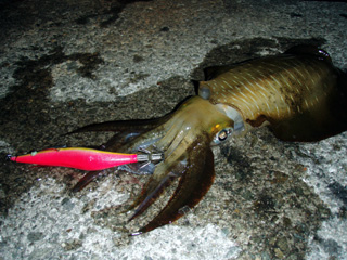 船宿の店主さんとの話によると「アオリイカの釣果は、ここ最近では朝だけ釣れてあとは無反応!」とのこと・・・早起きは三文の得とはよく言ったモノで朝から頑張った人にはアオリイカが釣れる可能性がみたいです。 |